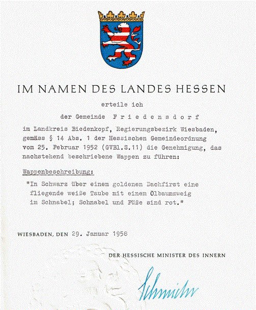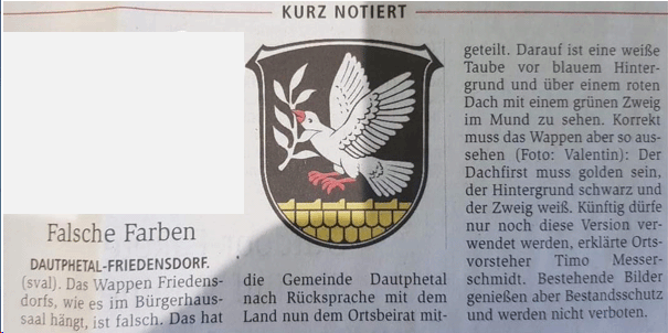 Es ist ein amtliches Dokument aus 1958 aufgetaucht, in dem die offiziellen Farben unseres Wappens beschrieben sind.